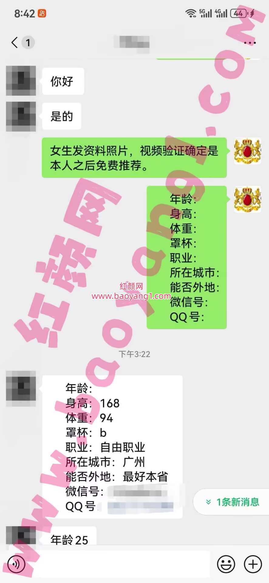 [广东] 广州/25/168/94/B/自由职业/可省内/已视频验证