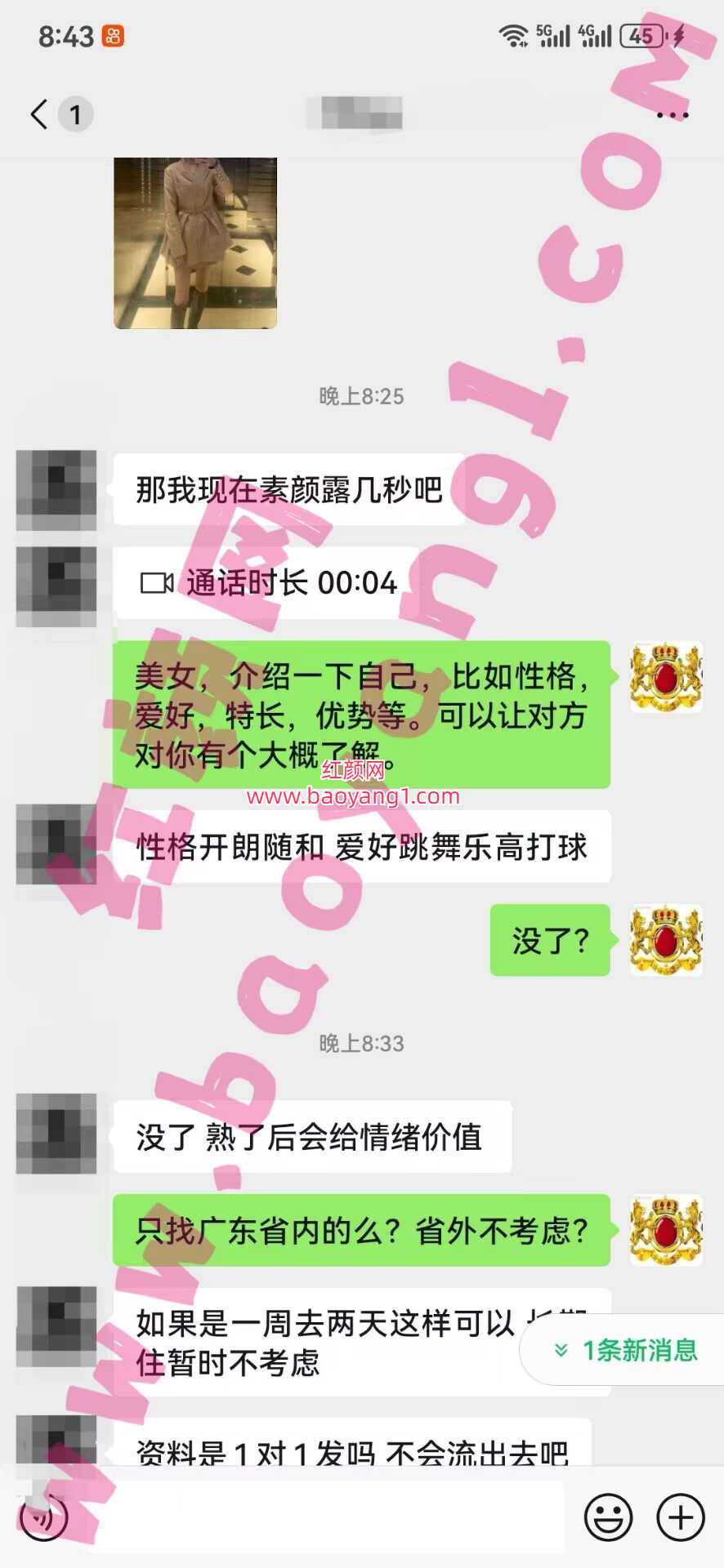 1.jpg 2.jpg 重点推荐:广州女孩,25岁,自由职业。五官精致,甜甜的女孩,身高168,苗条,大长腿,女友型。PS:已通过客服视频验证,确保真实。可以接受广东省内,有意的会员速联系吧。
